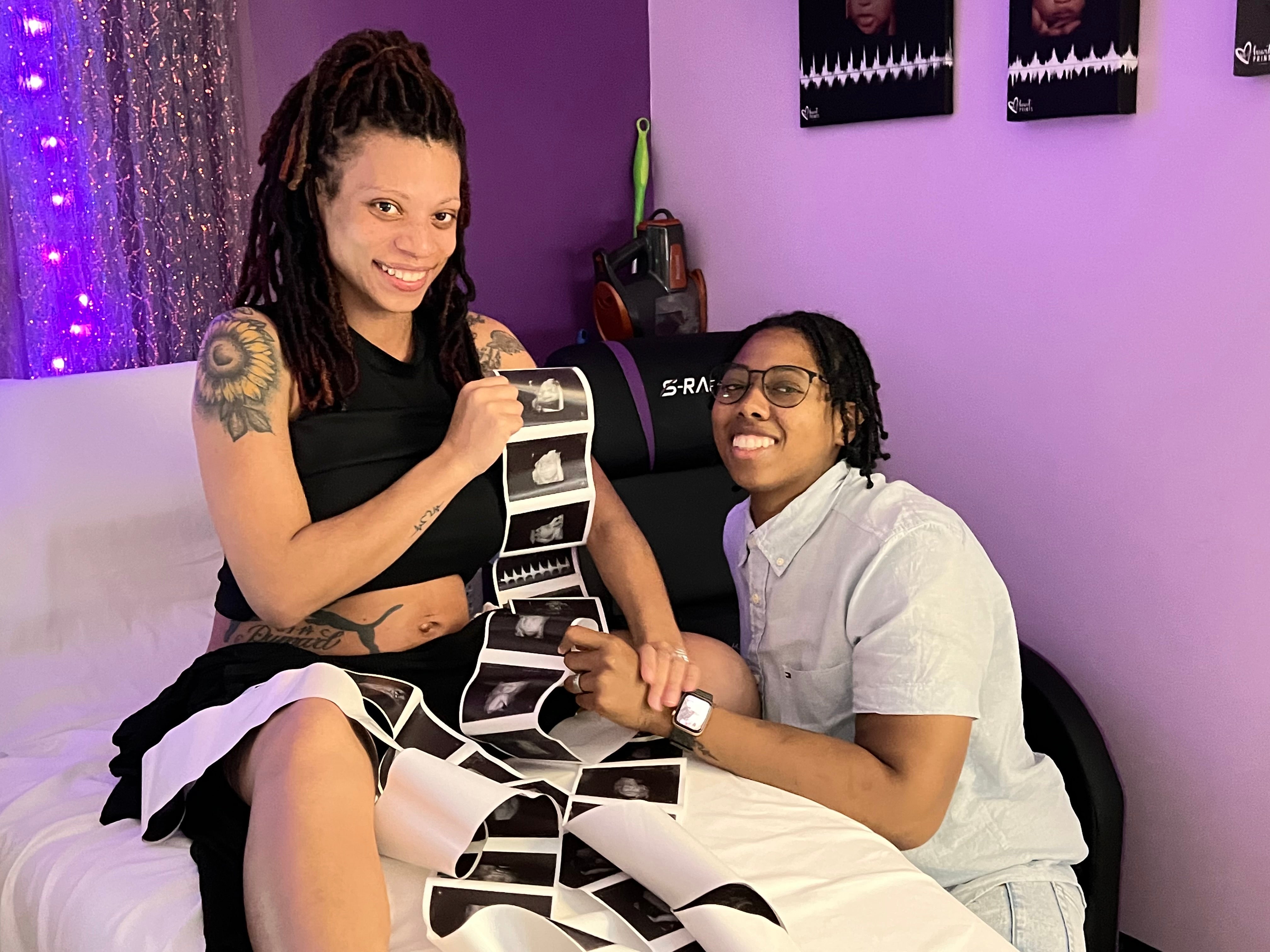 My wife and I have been together on and off for 15 years. I have been with men prior to her. When I was younger I experienced ovarian cysts. I swore I could not have children, I was 30 and had never been pregnant. Although I made several attempts. We used a mutual friend via natural insemination for months with no luck. We heard about Mosie Baby back in 2017 and finally bought a kit in 2021. We relocated to Texas in 2023 and decided it was time to try with our long time donor that we had met back in 2020 who lived in Houston. We got pregnant first try. Baby R will arrive in July 2024. He’s definitely our definition of planned creation of life.